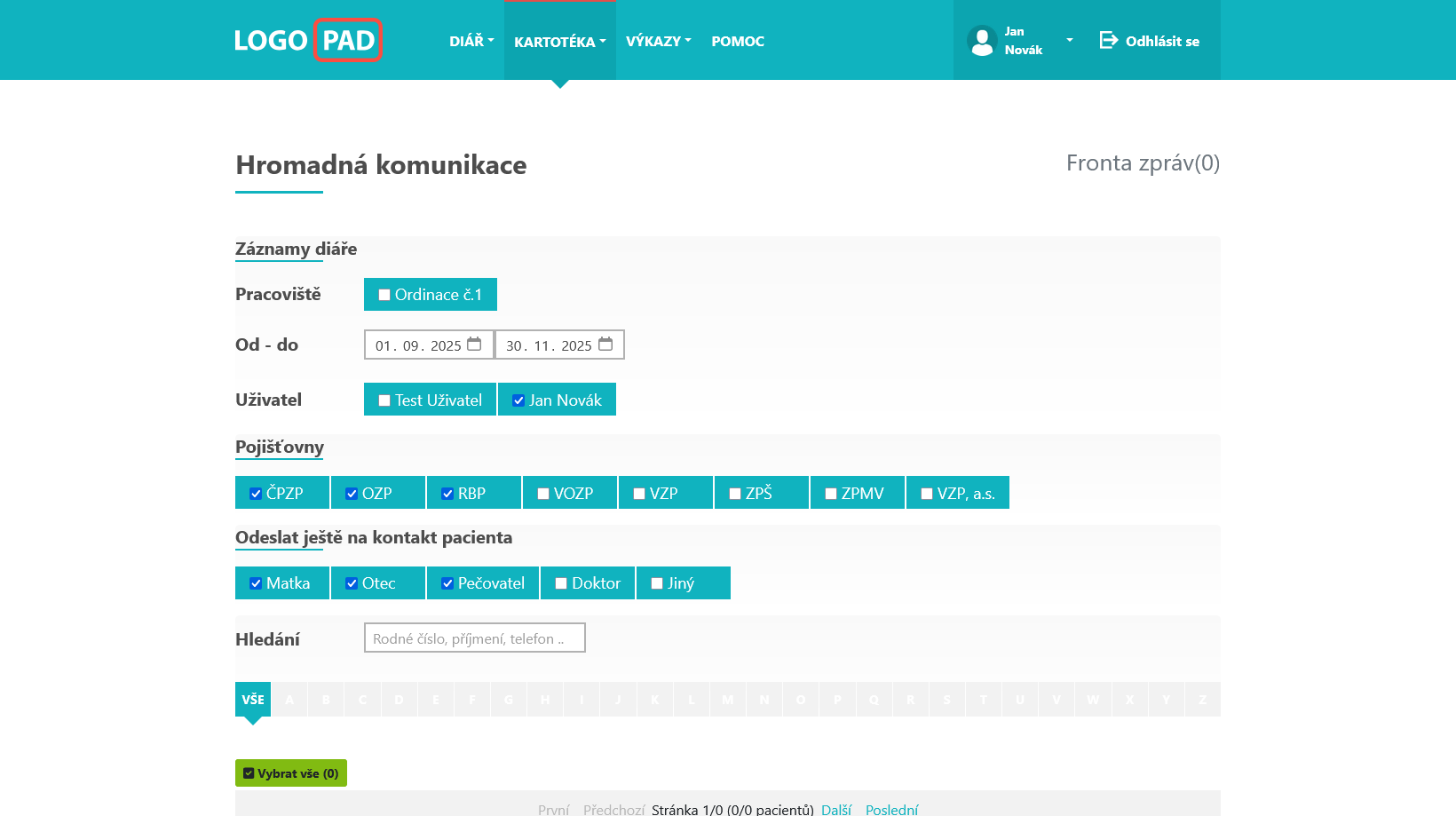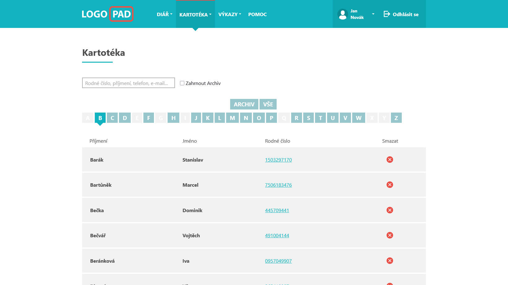 Snadné vyhledávání a filtrace dle příjmení, rodného či telefonního čísla