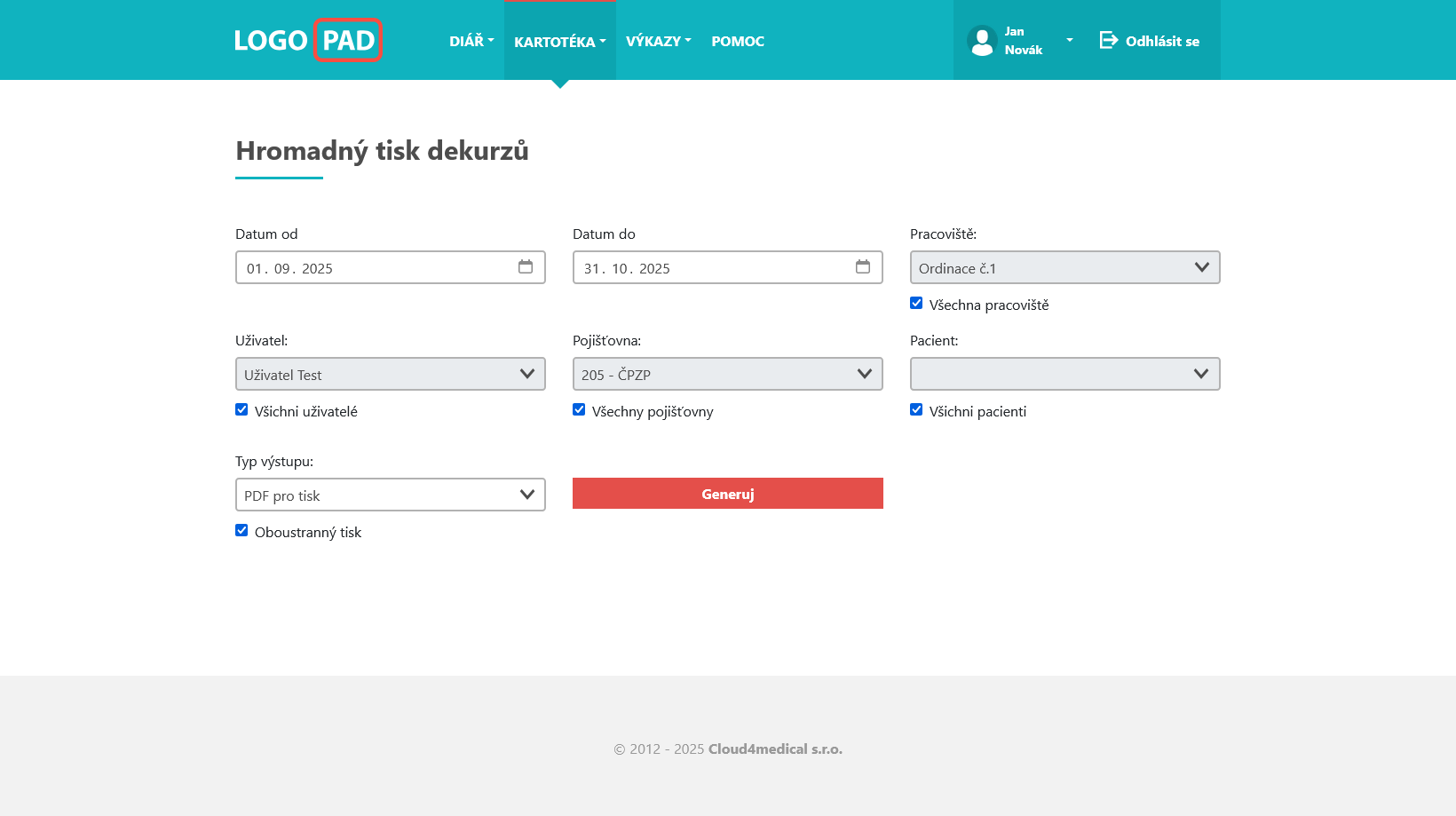 Zvolte, co potřebujete. Jeden záznam, nebo hromadný tisk všech dokumentů během okamžiku. S hlavičkou Vaší ambulance nebo bez.