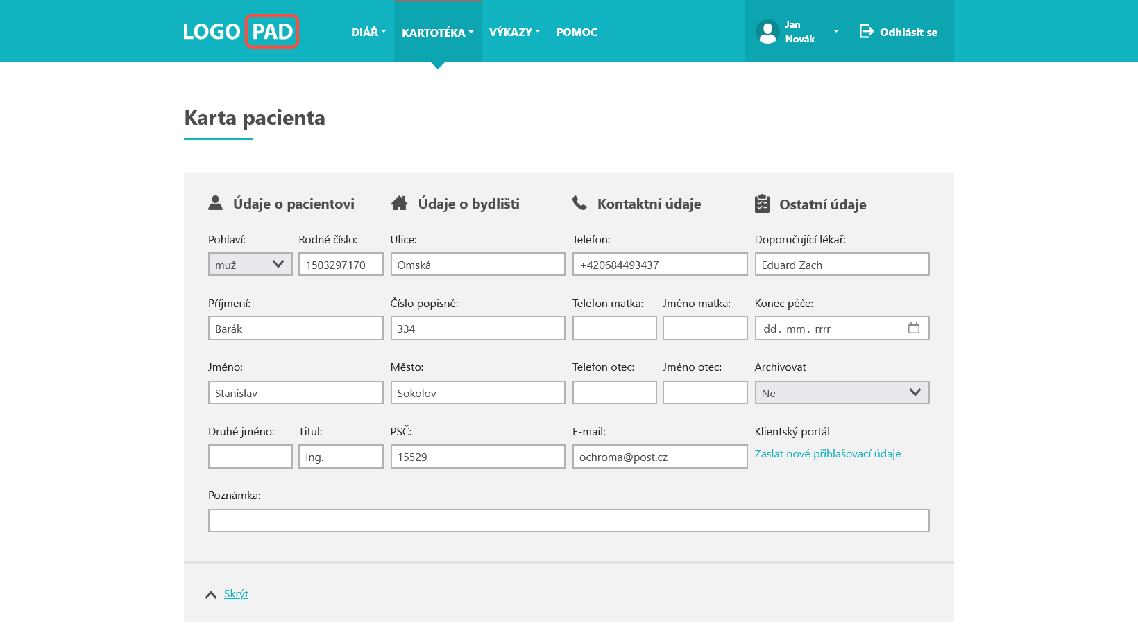 Kompletní evidence anamnézy a diagnostiky pacientů